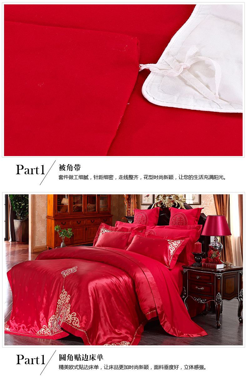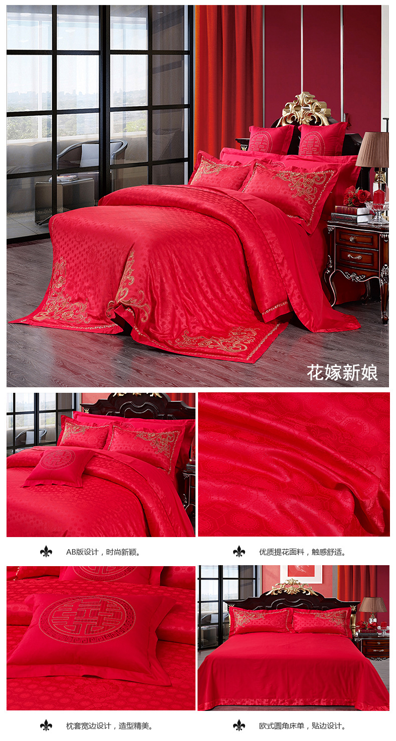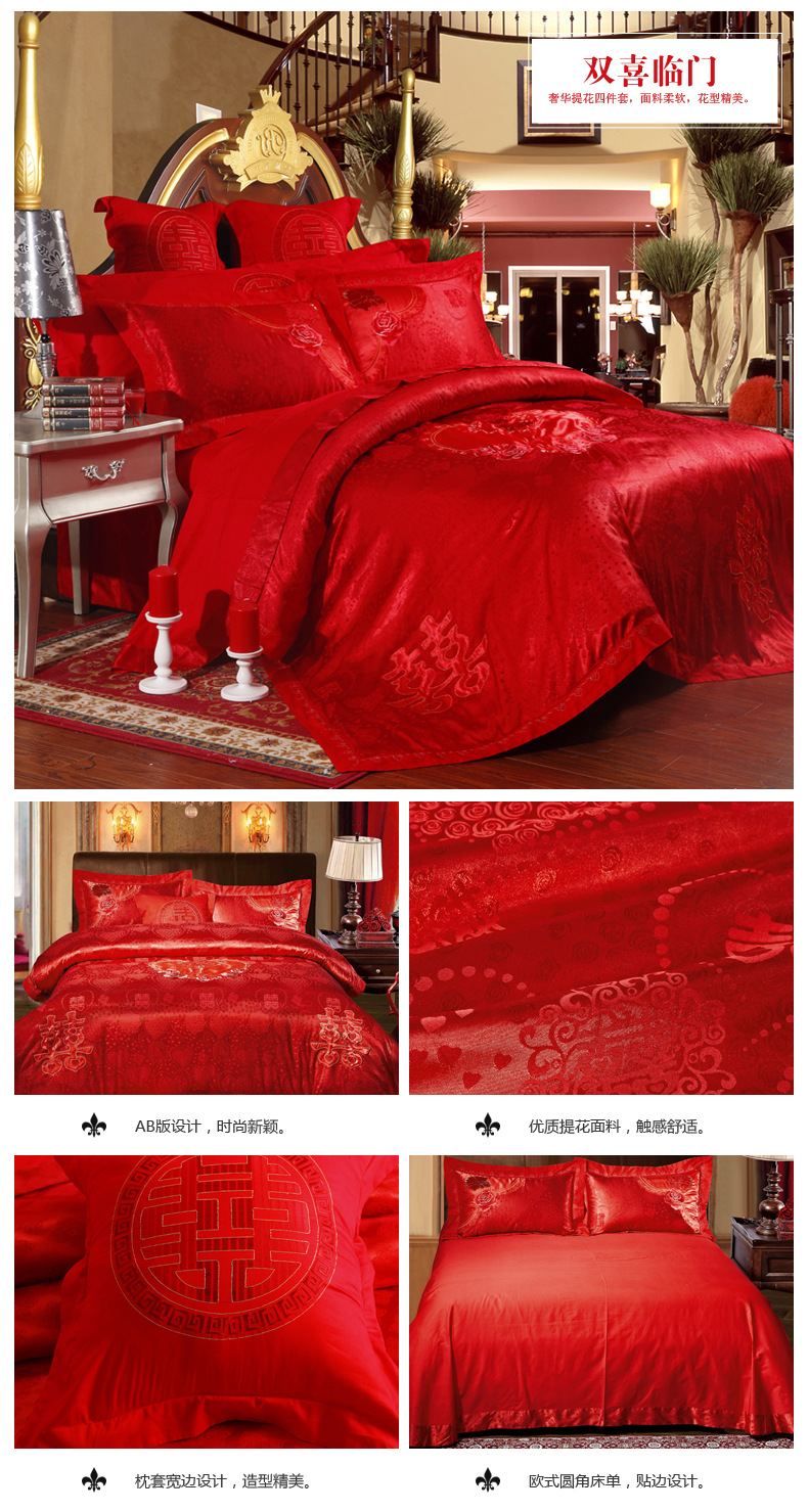 488元纯棉贡缎提花婚庆床上用品四件套大红色 婚庆套件