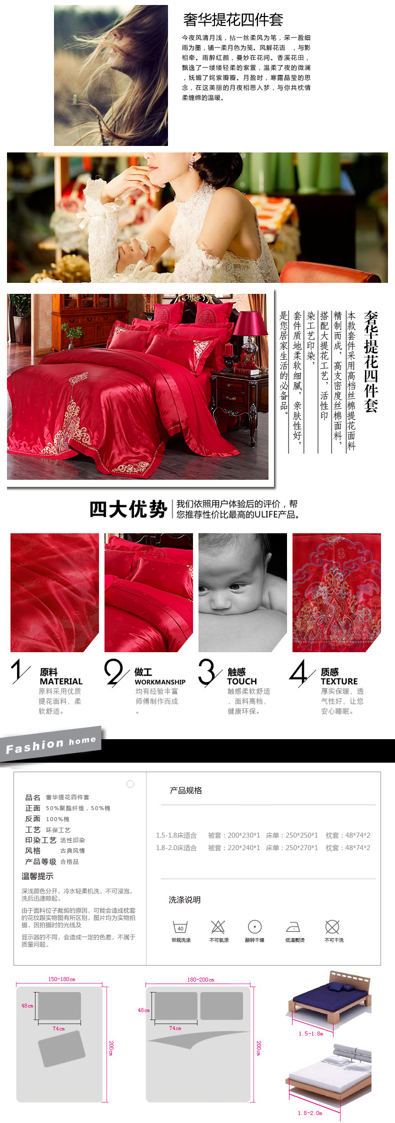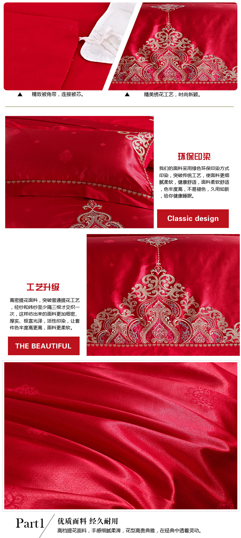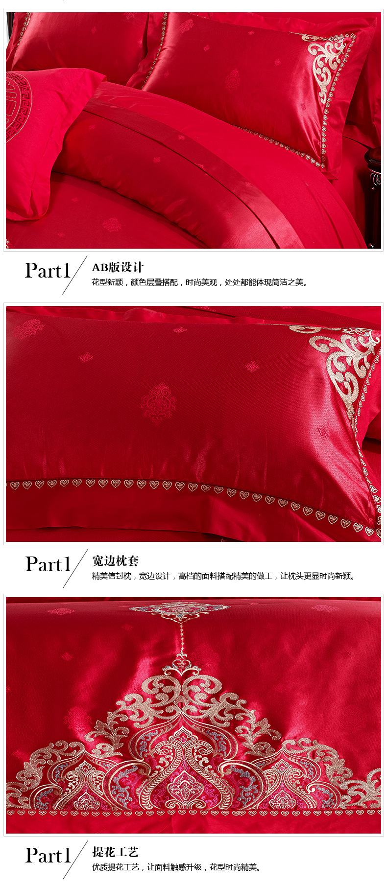 488元纯棉贡缎提花婚庆床上用品四件套大红色 婚庆套件
